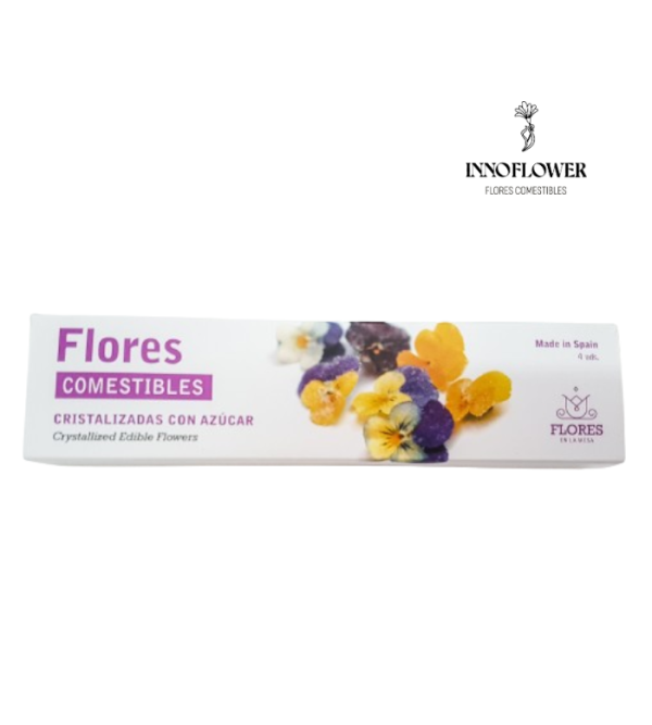 Flores cristalizadas comestibles. Ideales para repostería o regalo. Contenido: 6 unidades. Peso: 4 gramos. País de origen: España. Vea abajo más información general, nutricional y alergénica.